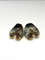 These fantastic earrings are sure to match with any white/cream or metalic top! 18k gold on oxidized sterling silver with 3 matched agate stones make these earrings pop!